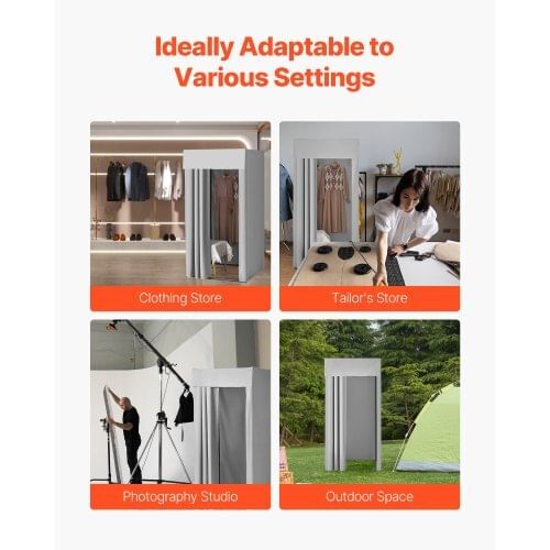 VEVOR Fitting Room, Dressing Room with Thick Polyester Curtains,Privacy Space with Shading Curtain and a Hook, for Boutique, Mall,Tailor’s Store & Outdoor 39 x 39 x 78 in (Black and Gray-White)