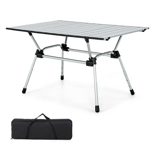 Folding Heavy-Duty Aluminum Camping Table with Carrying Bag-Silver – Color: Silver