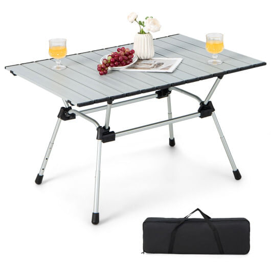Folding Heavy-Duty Aluminum Camping Table with Carrying Bag-Silver