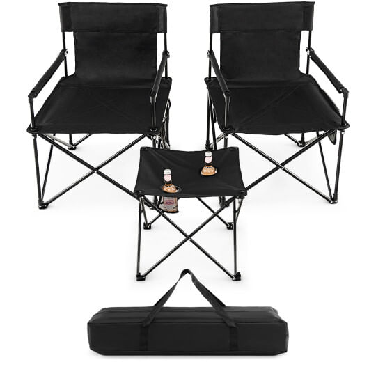 Outdoor Folding Camping Chairs and Table Set with Carrying Bag-Black